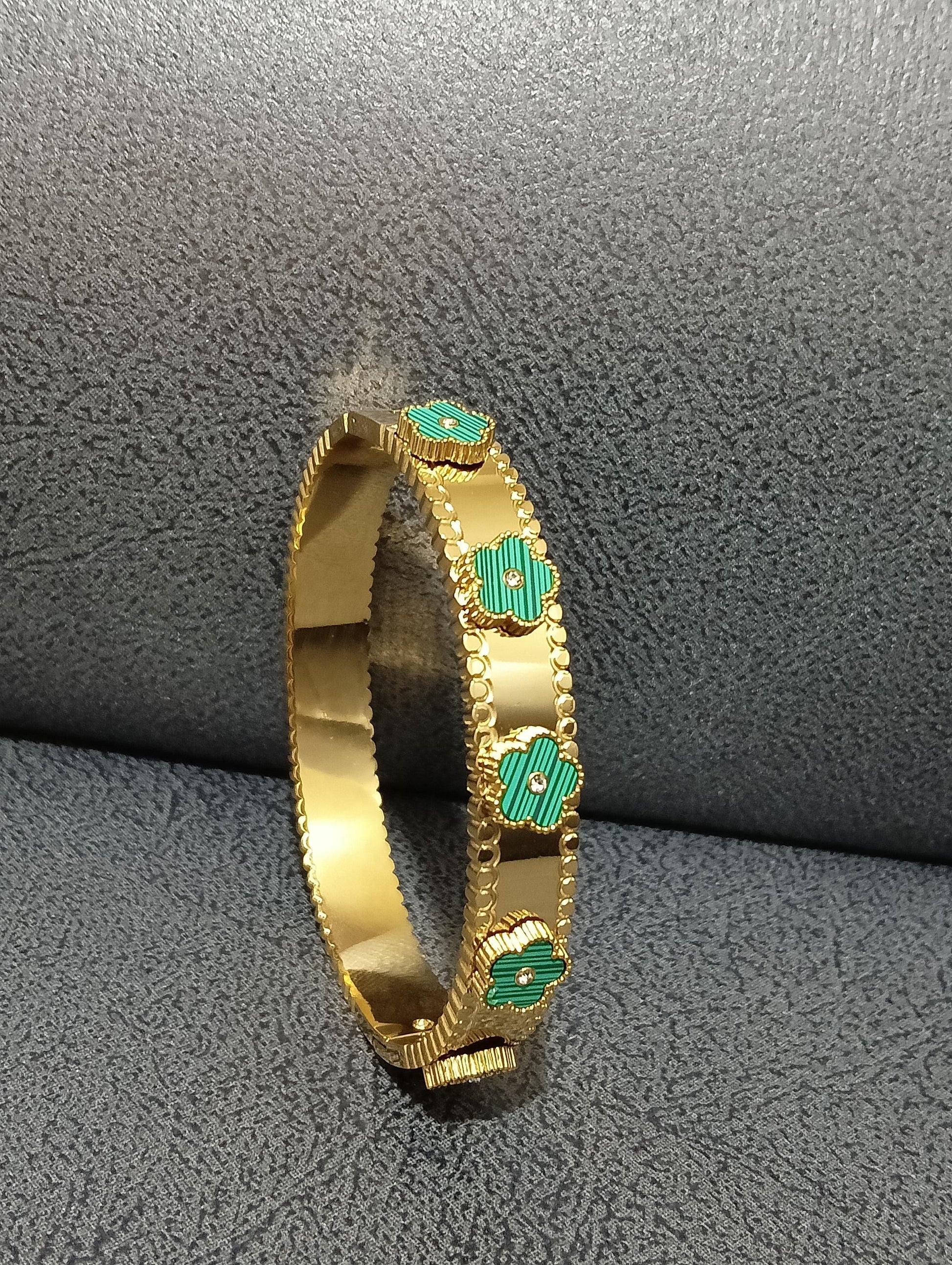 18K Gold plated Green Clover Bracelet Bangle, Minimalist Stackable Bracelet, clover flower, Statement Jewelry, Birthday Gift for Her, Waterproof Four Leaf Gold Clover Bracelet, Green Clover Necklace, Birthday Gift for her, Five Leaf Clover Bracelets for Women, Lucky Clover Bracelet, Gold Clover Necklace, Mother of Pearl Bracelets, Flower Bracelet, Green Clover bracelet, Green clover necklace, Dainty Bracelets, Gift for her, Waterproof, Birthday Gift, Gift for her, Leaf Clover Bracelet